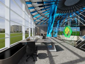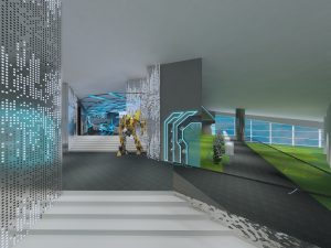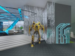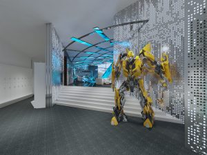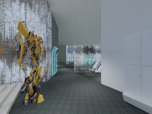 设计师匠心独运,结合高尔夫场馆主理人的个人喜好,走廊区的“大黄蜂”艺术装置,强调了空间的科技感,增加了公共活动区的观赏与趣味性。