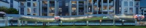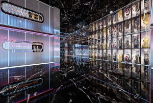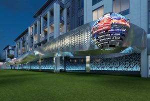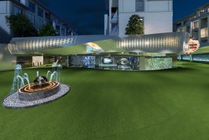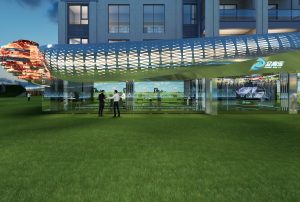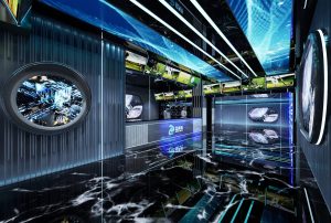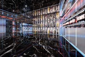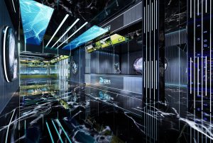 本案外立面设计在硬朗的折线条中加入有弧度的曲线,力量中透着柔美。这些线条承前启后将引领顾客从神秘的入口走进各个空间。外立面,承载项目未来感的门面,设计师将其打造成太空的形态。菱角分明设计元素,配合流线型的光源线条,让人充满无尽的遐想。顾客仿佛游走夜里,走在未来,走在异次元。在亦真亦幻中找到本真的自我。