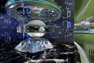 该方案利用元宇宙中的虚拟场景作为设计灵感,提供多种元宇宙的概念,包括未来世界、科幻世界、奇幻世界。借鉴元宇宙的背景和场景元素,利用颜色、材质、图案等设计元素,以及利用元宇宙中的科技成果作为设计元素,如虚拟现实、智能设备等等。