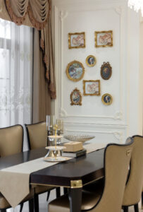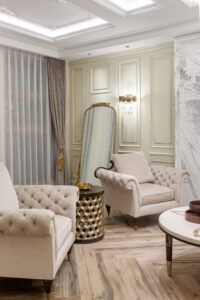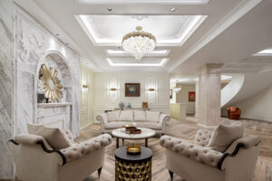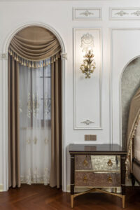 现代的轻豪华装饰风格,上面的装饰将更简单的现代元素与古典元素的氛围结合在一起。无论是在软装硬装的布局设计中,还是在色彩图案的使用中,都能体现出这一特点。现代风格硬装配合柔和的古典风格家具,整体的感觉时尚且豪华。