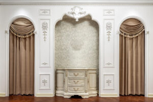 入户设计推崇高贵、优雅与浪漫,演绎着王子与公主的浪漫唯美爱情故事。朦胧的灯光设计、高档的家具装饰以及复古的装饰特点,处处散发出高贵的气质、古典的气息、优雅的品味。