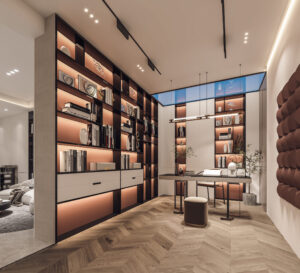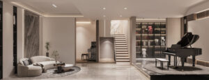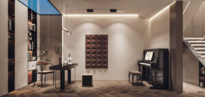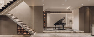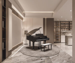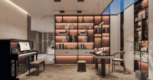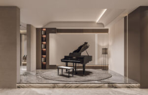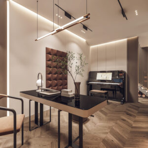 书房通过天窗显得明亮宽敞,而钢琴私教区考虑了照明和美观。