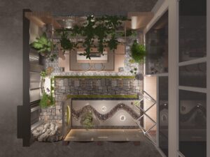 原始的水泥凸显沉静与代入感。 待在水泥建构的空间里,整个人会不由得放慢脚步,享受室内的静谧与美好。它的简洁、硬朗、个性特质与现代人的生活节奏不谋而合,灵活的搭配设计更是赋予了我们更多的创意空间。 在保证人体工程和人流动线的基础,保留顶面原始建筑的面貌,用原始的材料联结空间,让整个空间在不经意间相互交替,运用墙天一体的方管、铁网材料,增加视觉延伸性,打造了一个朴素的空间环境。
