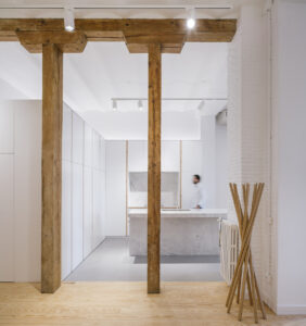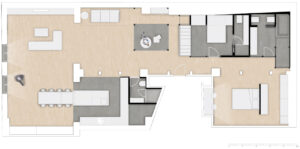 侘寂之美主张“不对称主义”,呈现一种不对称却包容的美。空间布局简约随意,满足基本的功能,保持布局中的“空”与简约风格,呈现侘寂风的随性美。